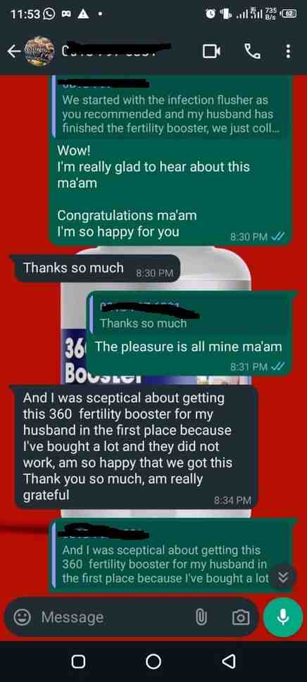 "My husband started using this 360 Fertility Booster about 2 months ago and I can see major improvements. His sperm is no longer Watery, he lasts longer and has more energy. Love it"